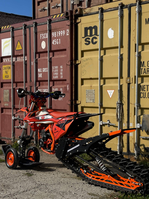 JAKONDА 123 от Snowbike — универсальный гусеничный комплект для внедорожных мотоциклов. Гусеничный мотоцикл (СНОУБАЙК) это, по сути, одноколейный снегоход. Вы получаете возможность продлить мото...